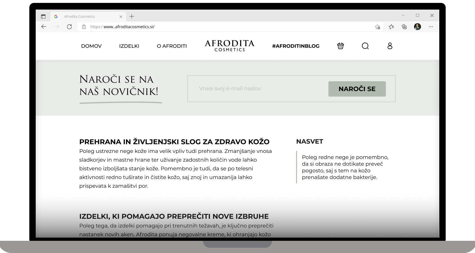 Redesign spletne strani Afrodita Cosmetics v Figmi.