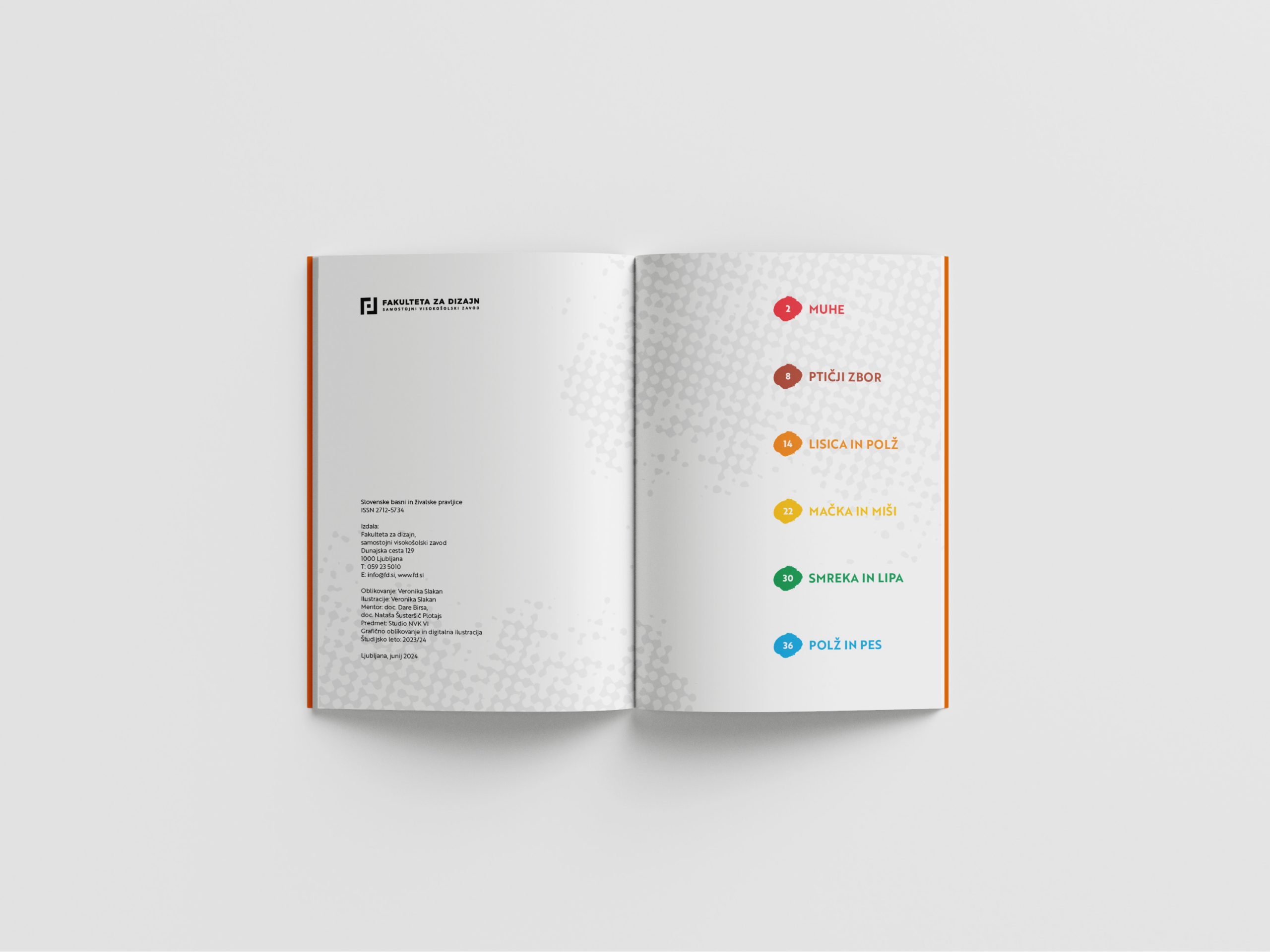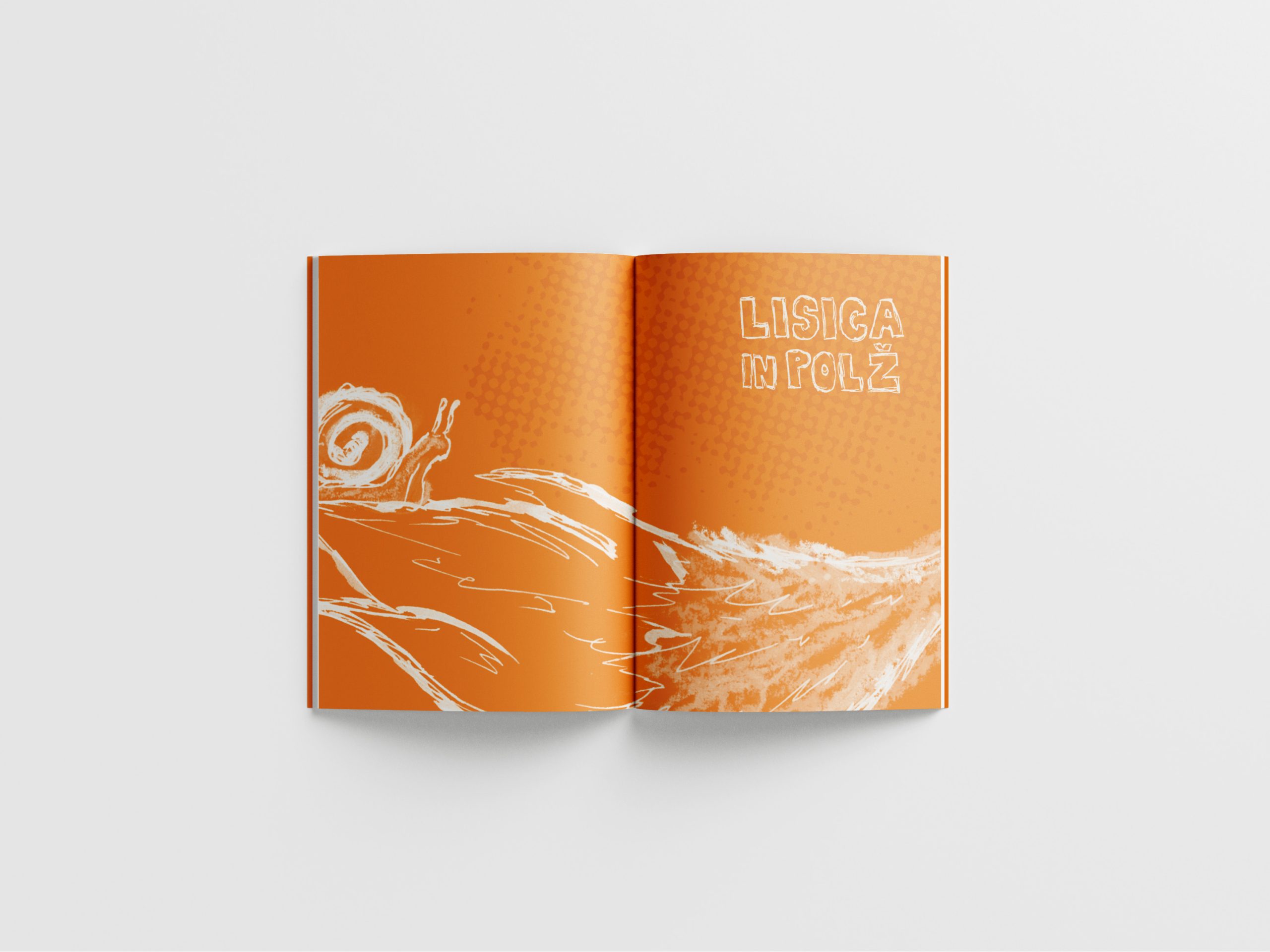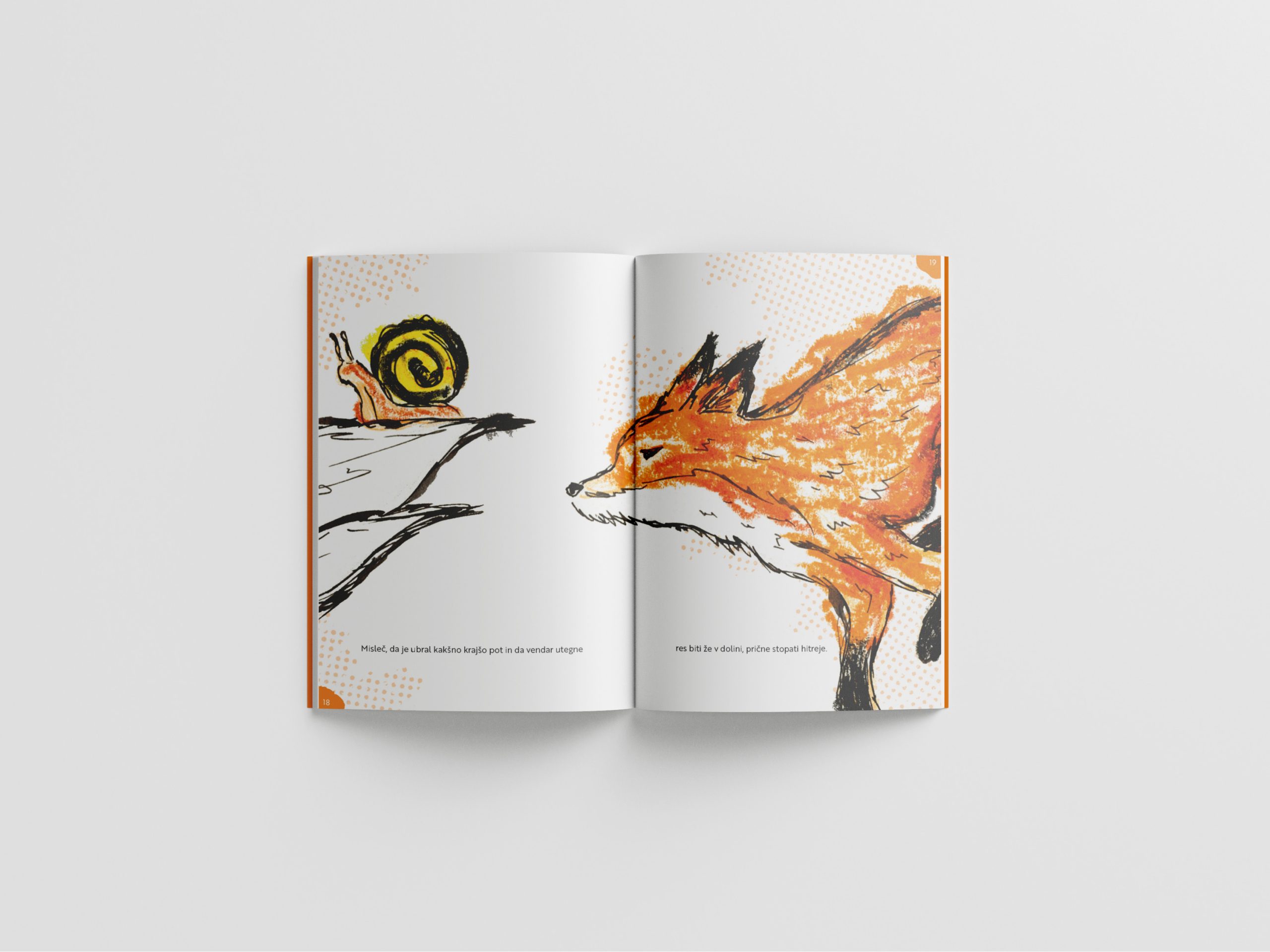 Na ovitku knjige se čez obe strani razteza ena izmed ilustracij iz knjige. V ozadju je barvni negativ iste ilustracije. Naslov je napisan ročno in se v enaki obliki pojavi tudi na prvi strani knjige. Sprednja polnobarvna ilustracija lisice je delno obrezana, kar vzbuja radovednost pri bralcu in ga spodbuja k raziskovanju, kaj se skriva v notranjosti knjige. Negativ v ozadju, kjer je videti večji del lisice, namiguje na globlji, skrit pomen zgodb v knjigi. Ključni elementi ovitka vključujejo tudi naslov na hrbtu knjige, ter kratek opis dela in črtno kodo na zadnji strani.