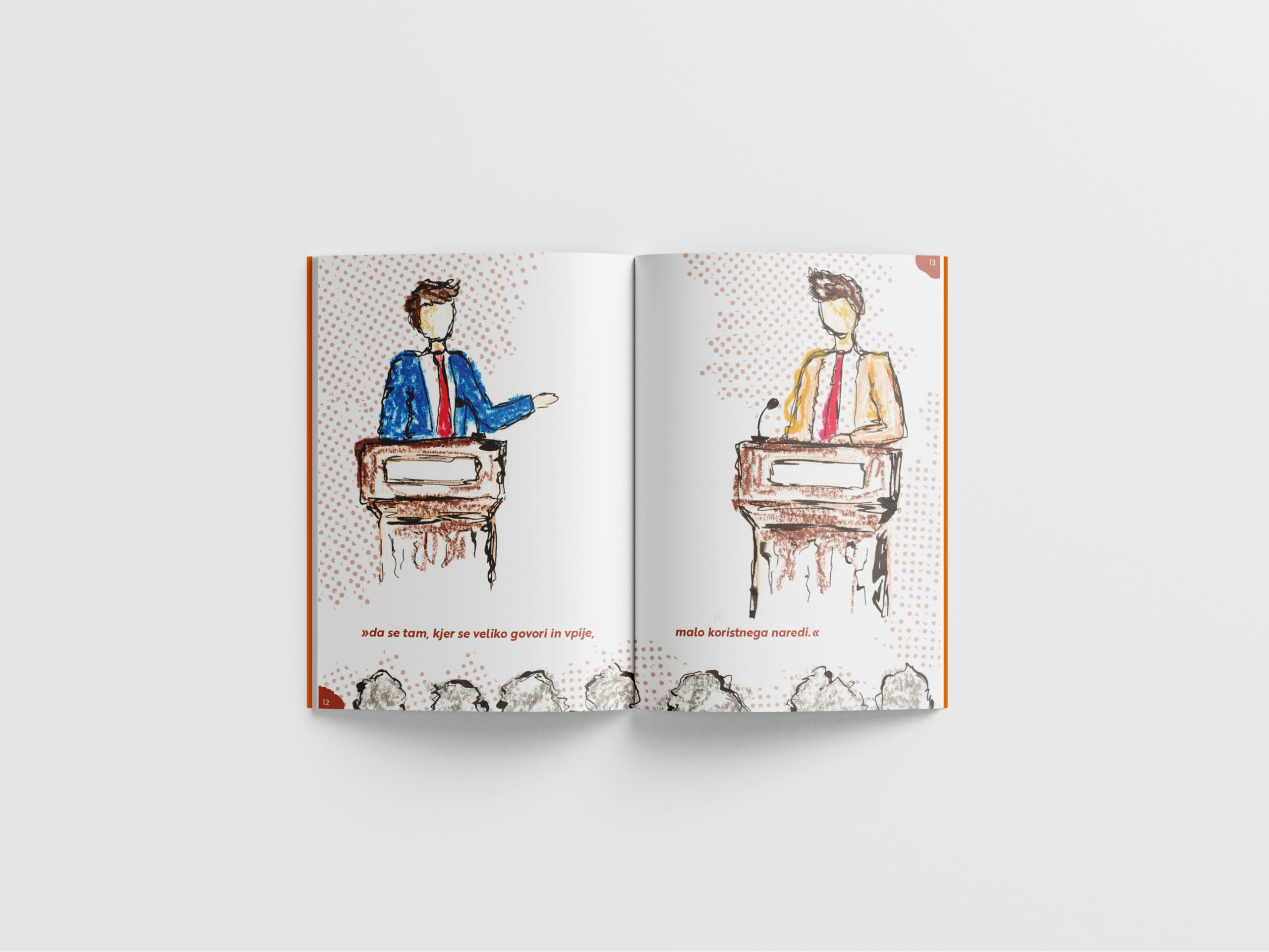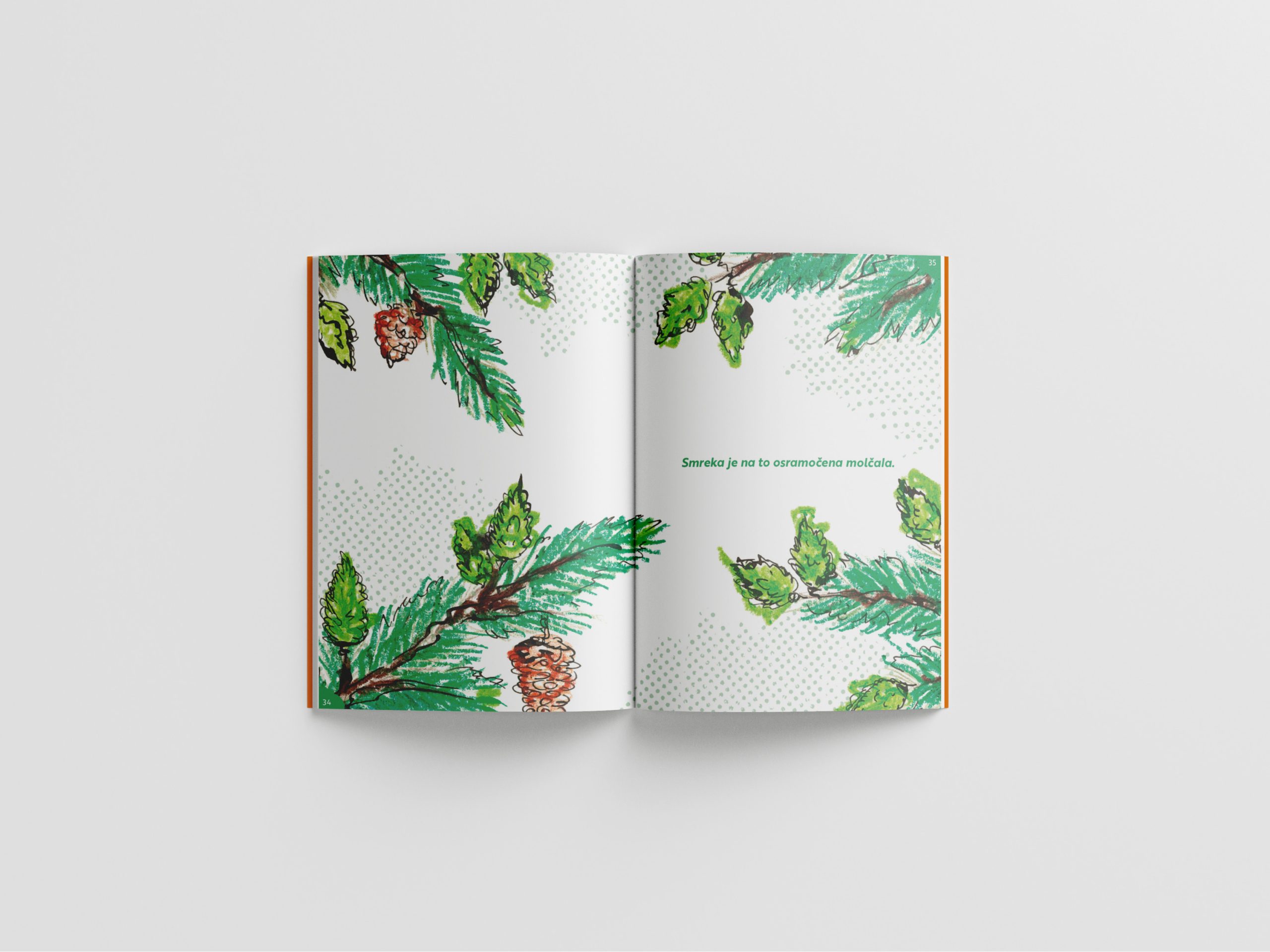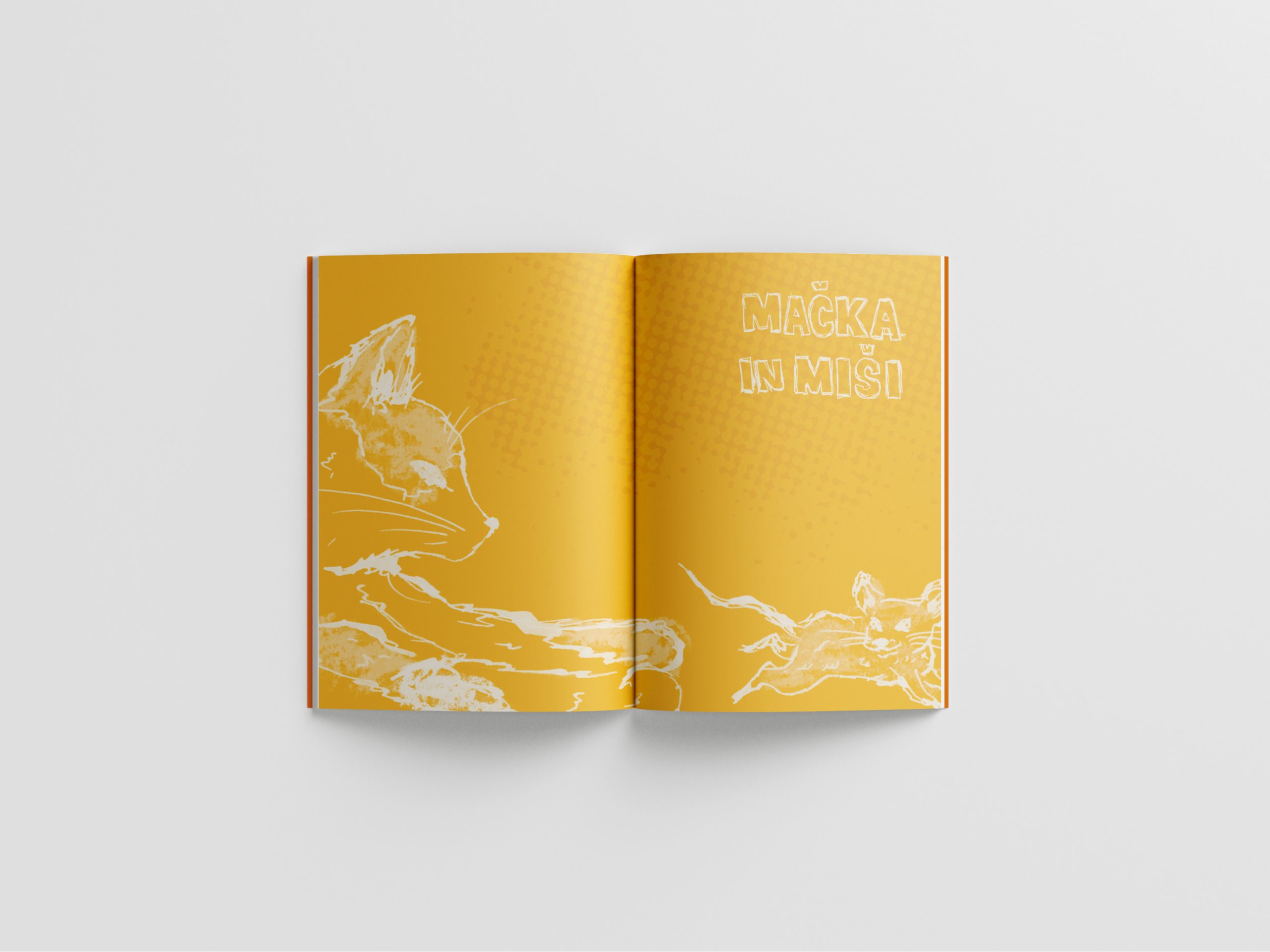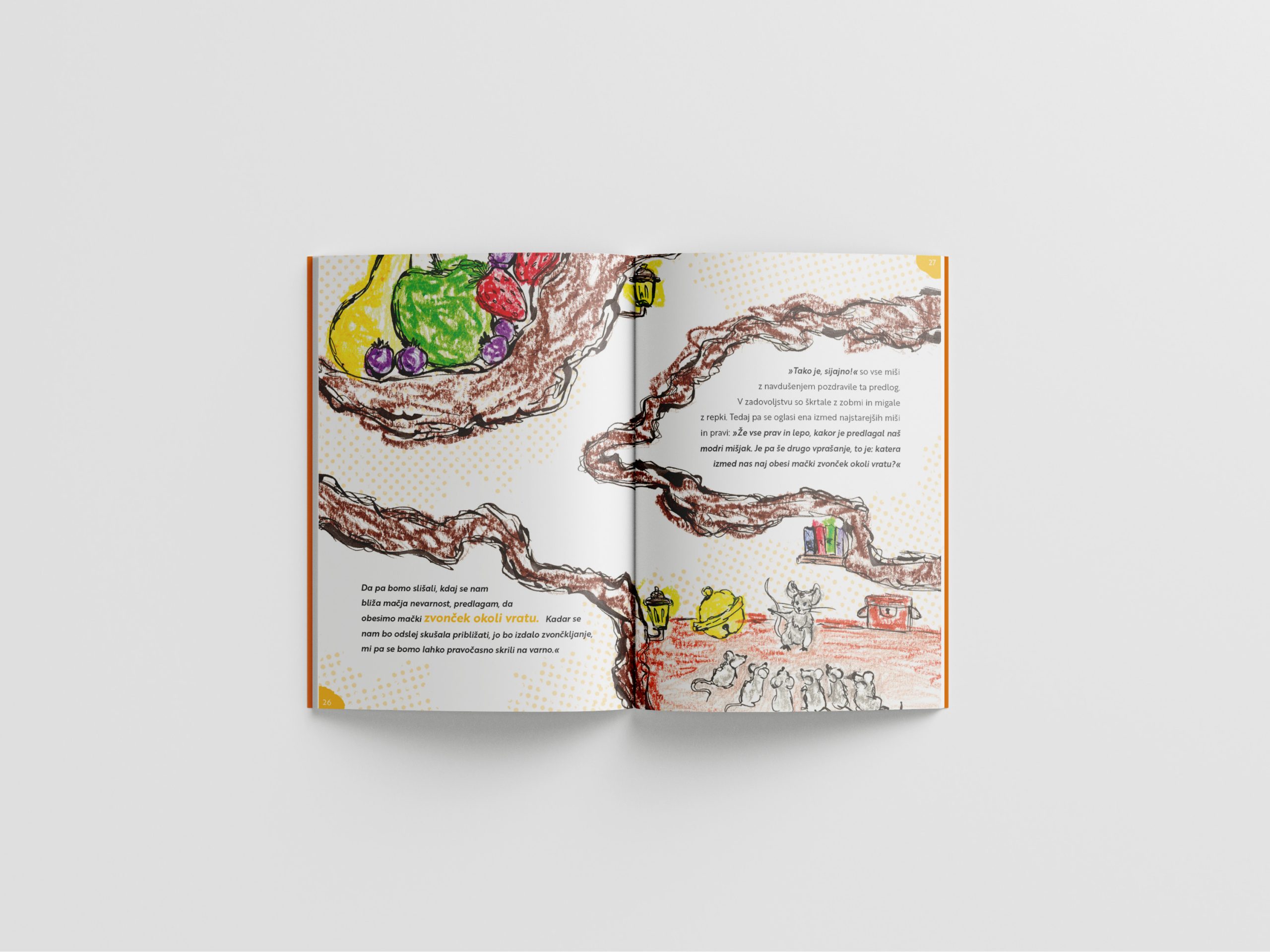 Na ovitku knjige se čez obe strani razteza ena izmed ilustracij iz knjige. V ozadju je barvni negativ iste ilustracije. Naslov je napisan ročno in se v enaki obliki pojavi tudi na prvi strani knjige. Sprednja polnobarvna ilustracija lisice je delno obrezana, kar vzbuja radovednost pri bralcu in ga spodbuja k raziskovanju, kaj se skriva v notranjosti knjige. Negativ v ozadju, kjer je videti večji del lisice, namiguje na globlji, skrit pomen zgodb v knjigi. Ključni elementi ovitka vključujejo tudi naslov na hrbtu knjige, ter kratek opis dela in črtno kodo na zadnji strani.