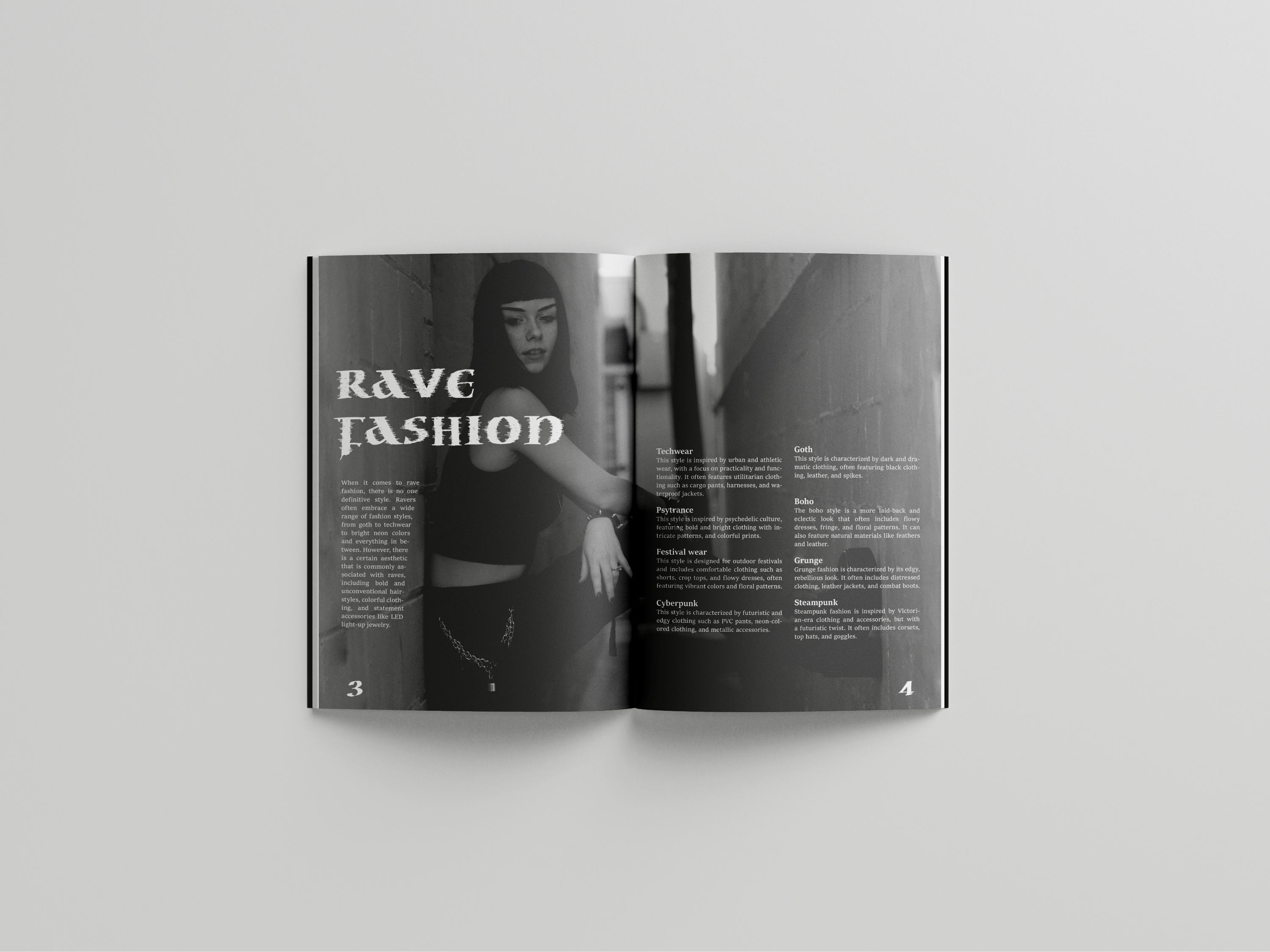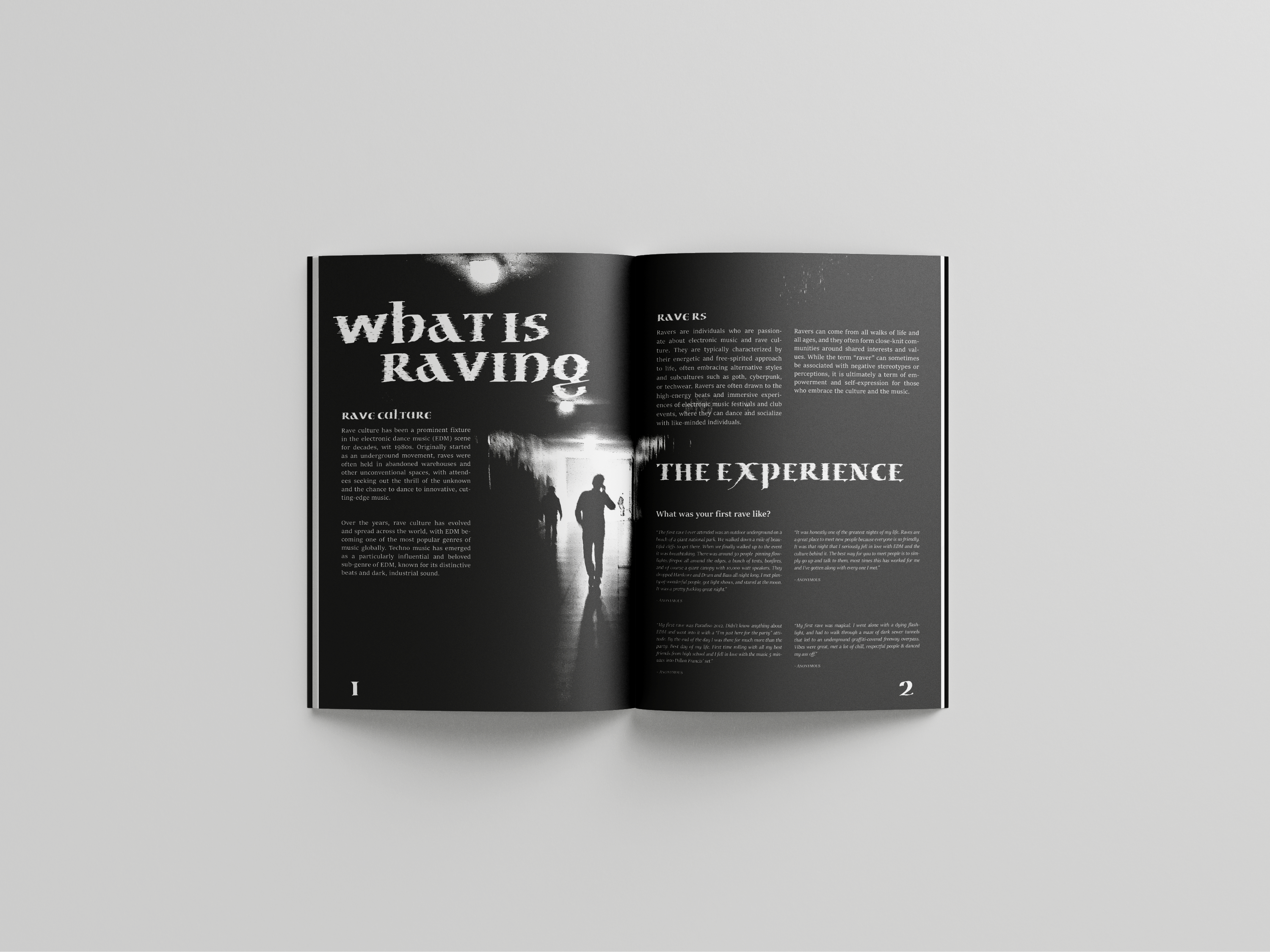 Ta display font sem ustvarila za oblikovanje publikacije na temo dark techna. Navdih za oblike črk sem črpala iz unicalne pisave, ki sem jo najprej ročno zapisala, nato pa digitalizirala v več različicah. V črke sem vključila elemente, ki spominjajo na valovne oblike glasbe, kar odseva vzdušje temnega glasbenega sloga. V sami publikaciji sem dodala element interaktivnosti s skeniranjem Spotify kod za glasbene vzorce.